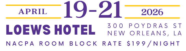 NACPA 2026 will be held April 19-21 in New Orleans, LA at the Loews New Orleans Hotel, 300 Poydras Street, located in the heart of the city. NACPA Block Room rates will be $199 per night.